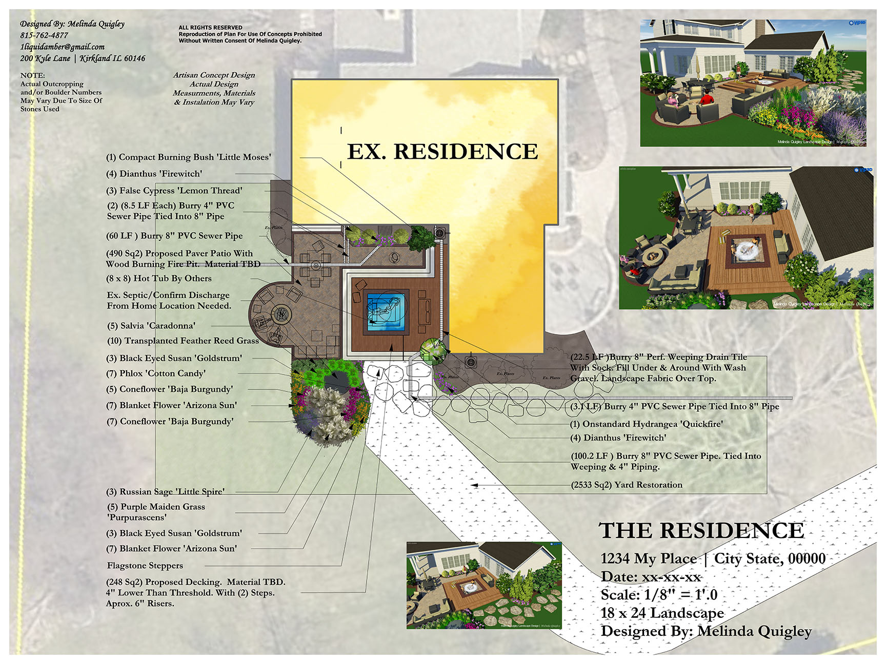 Browse these examples of my work to find your inspiration, or call and let me help you realize your landscaping vision. Getting started is easy: Call Melinda Quigley at 815-762-4877 or email me 1liquidamber@gmail.com to schedule an appointment at your home or business.
